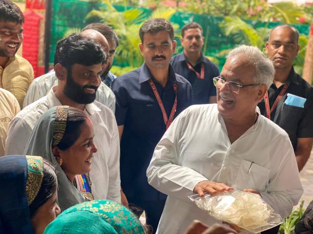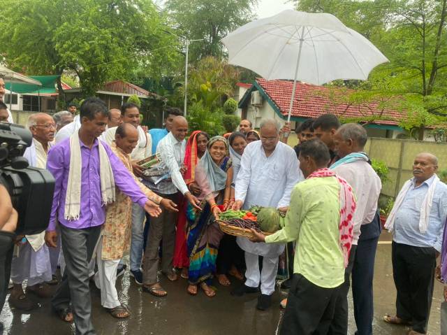 महिला समूह ने गौठान में उगाई हुई सब्ज़ी भाजी अगरबत्ती पापड़ मसाले भी मुख्यमंत्री को भेंट की