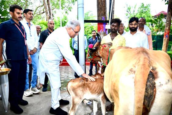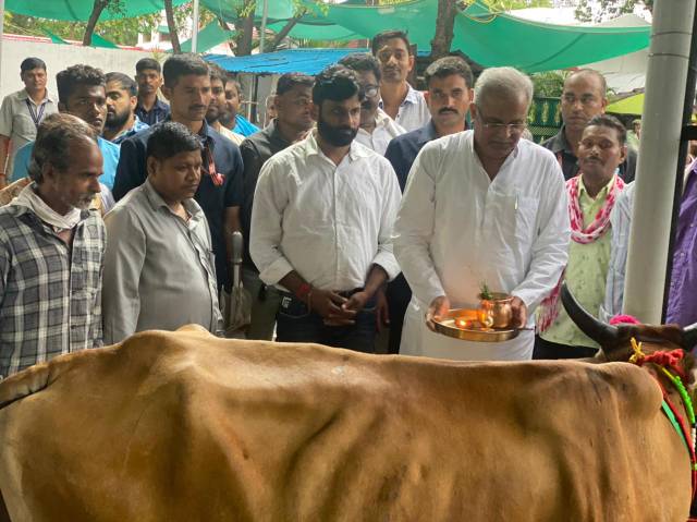 144 करोड़ की गोबर ख़रीदी पर महिला समूह और किसानों ने मुख्यमंत्री को “गाय-बछड़ा” आशीर्वाद स्वरूप भेंट किया