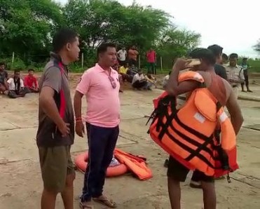फंसे युवक को निकालने बोट पानी में उतारी जा रही….