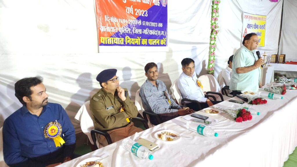 कार्यक्रम में गरियाबंद पुलिस अधीक्षक अमित तुकाराम काम्बले ने अपने अध्यक्षीय उद्बोधन में कहा कि सड़क सुरक्षा का मुख्य उद्देश्य लोगो को अपनी जान का महत्व समझाना और यातायात के नियमो का पालन कर अपनी वह दूसरों के जान की सुरक्षा करना है।लोग जितना यातायात के नियमो का पालन करेंगे उतना ही दुर्घटना कम घटेगी। हर व्यक्ति को चाहिए कि वह अपने गंतव्य तक पहुंचने के लिए जो समय निर्धारित करते हैं समय से पहले ही उसके लिए रवाना हो ताकि वह आराम के साथ गंतव्य तक पहुंच जाएं ।