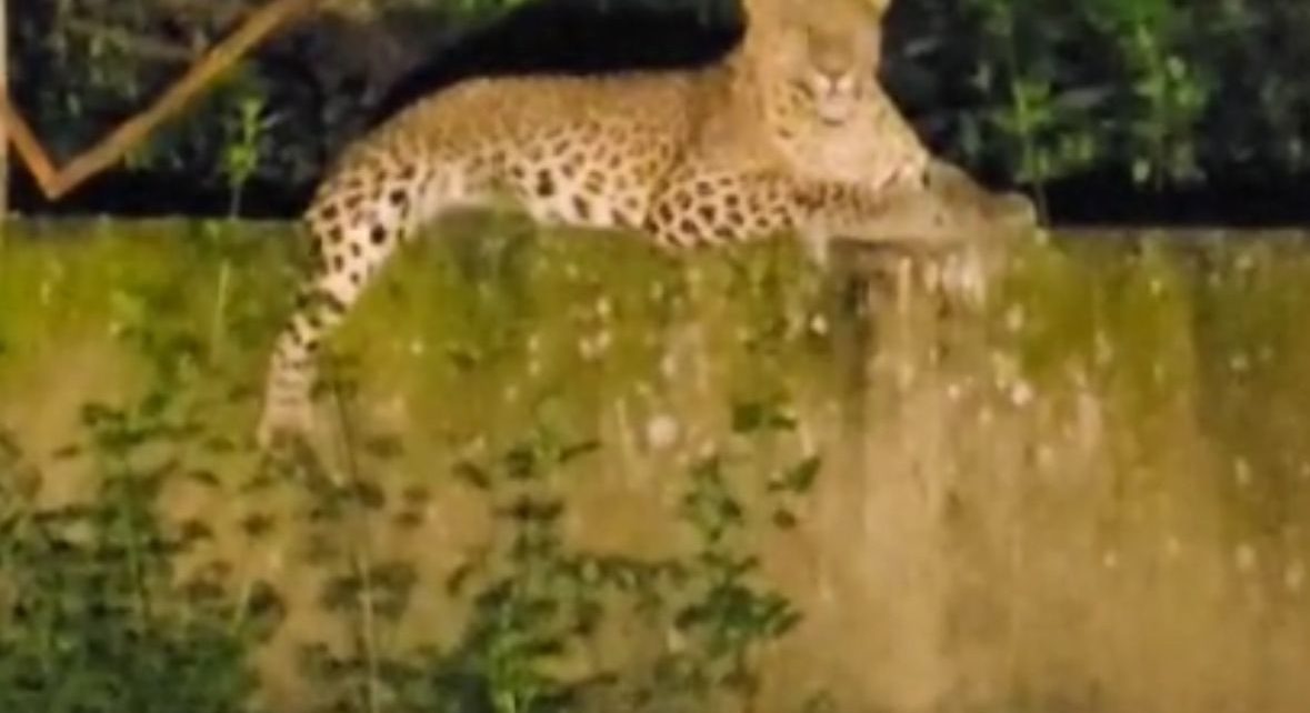 जिला अस्पताल के बाउंड्री वाल में देर रात 12:30 बजे देखा गया तेंदुआ