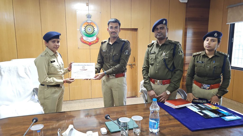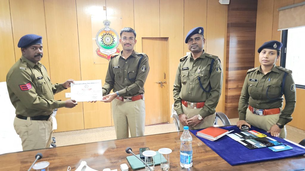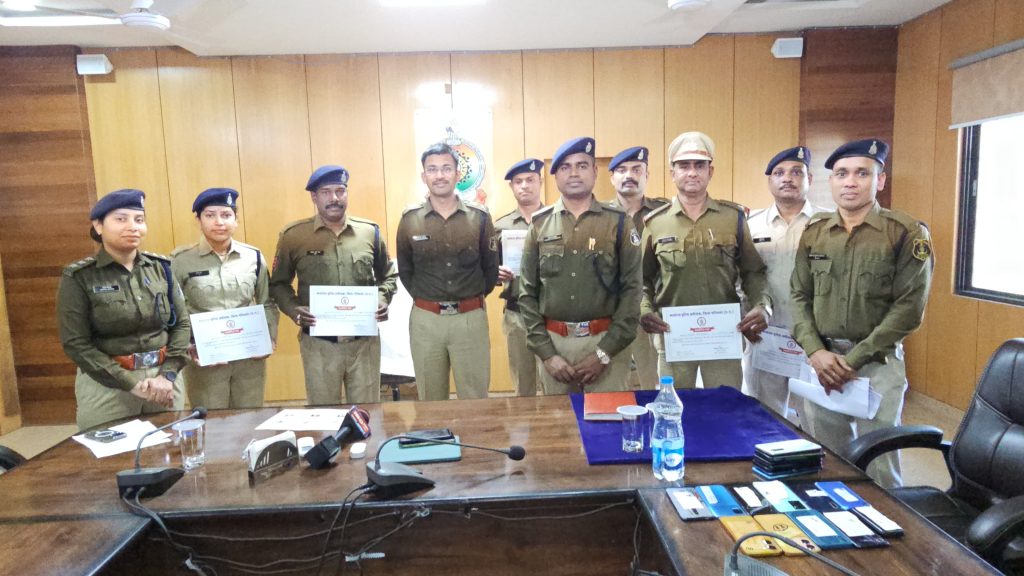 पुलिस ने खोज निकाला 46 से अधिक गुमशुदा मोबाइल ग्रामीणों को सौपा,एवं 6 उत्कृष्ट पुलिस जवानों को किया पुरस्कृत