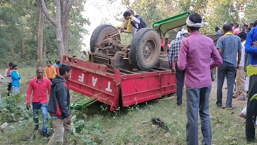 ट्रैक्टर रैली में जा रहा ट्रैक्टर पलटा